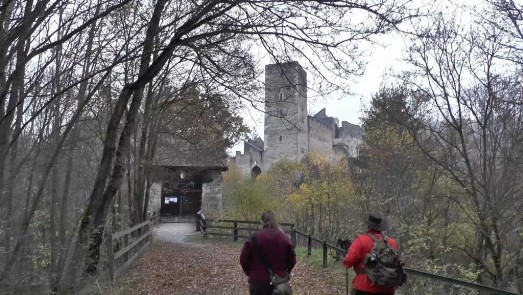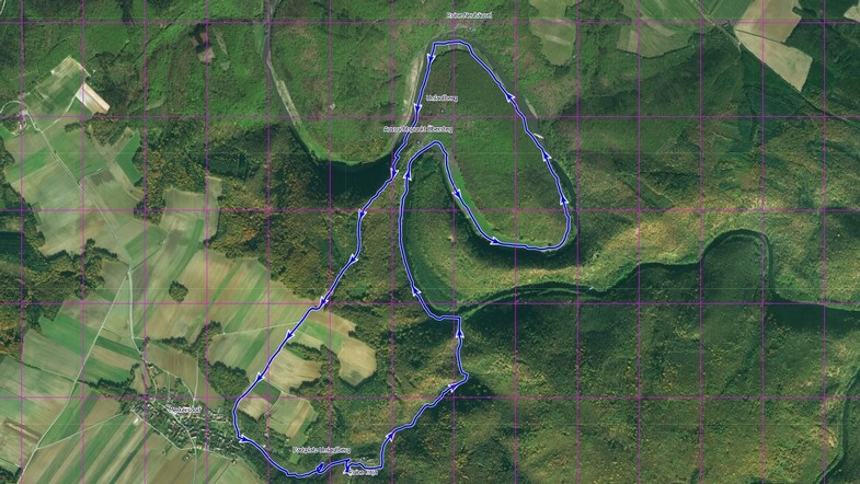 Vom Parkplatz ist es nur ein kleines Stück Weg zur Burgruine Kaja, welche eindrucksvoll auf einem Felsen gebaut wurde, und welche während der Öffnungszeiten kostenpflichtig besichtigt werden kann. Weiter geht es bergab durch einen schönen Wald an Felsen vorbei den Kajabach entlang zur Thaya. Die Thaya zur rechten Hand wandern wir nun in Richtung Übersteg. Wer möchte kann den Bergrücken zum Übersteg hinaufgehen um von dort die Aussicht zu genießen. Ansonsten geht es in der romantischen Landschaft weiter der Thaya entlang um den Umlaufberg herum. Am anderen Ufer der Thaya sehen wir auf der tschechischen Seite die Ruine Neuhäusel auf eine Felsnase thronen. Am weiteren Weg liegt wiederum die Thaya zu unserer Rechten und zu unserer Linken der Umlaufberg, bis wir die Abzweigung nach Merkersdorf erreichen, welche leicht zu übersehen ist. Nun geht es 140 Höhenmeter durch den Wald steil bergauf, bis uns der Weg wieder flach nach Merkersdorf und zurück zum Parkplatz führt.